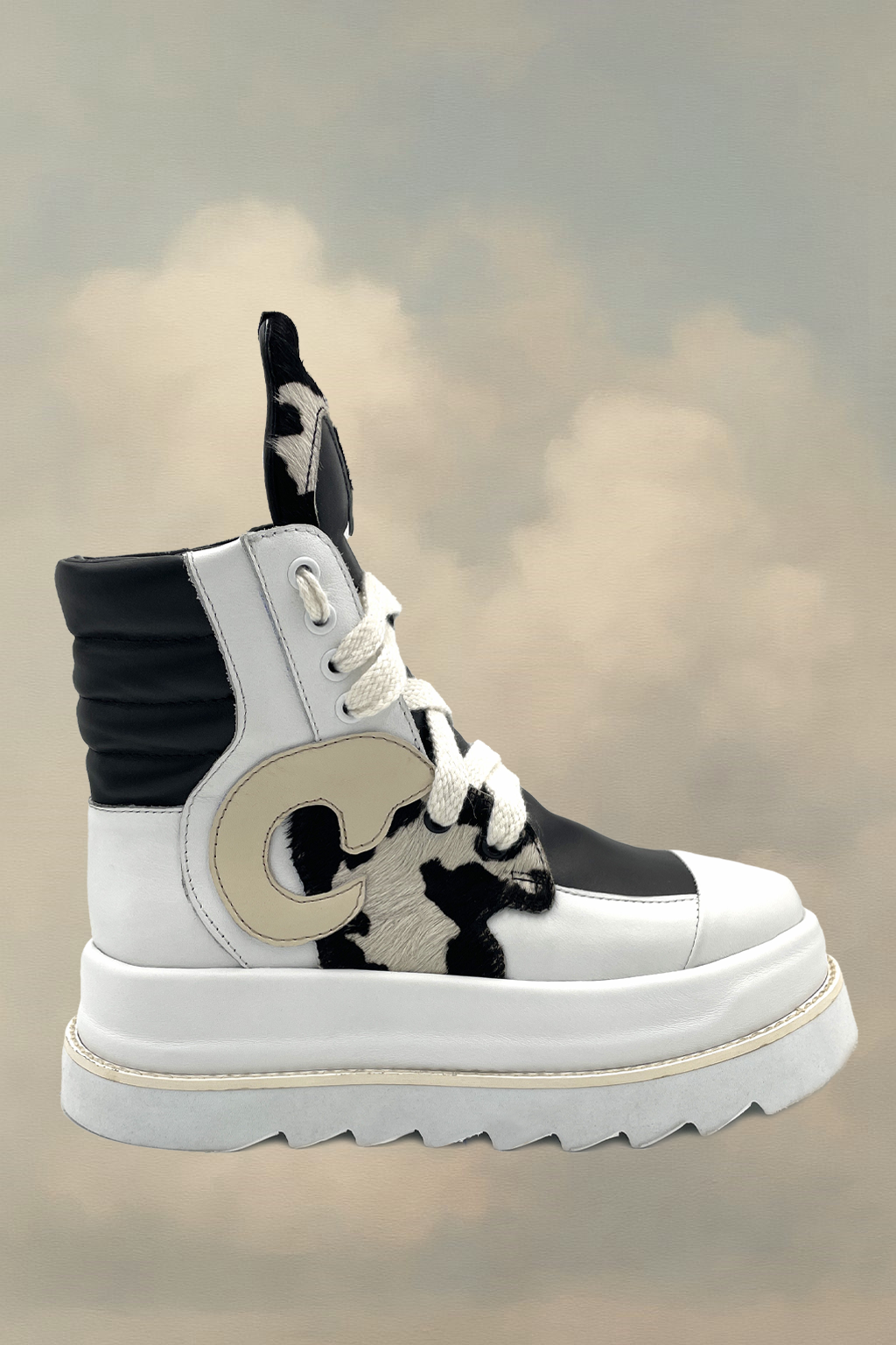 Meticulously handcrafted from supple genuine leather, with exquisite attention to detail — a timeless expression of effortless elegance. The sole is wrapped in leather, featuring a sculptural wave design that brings the total height to 6.5 cm.