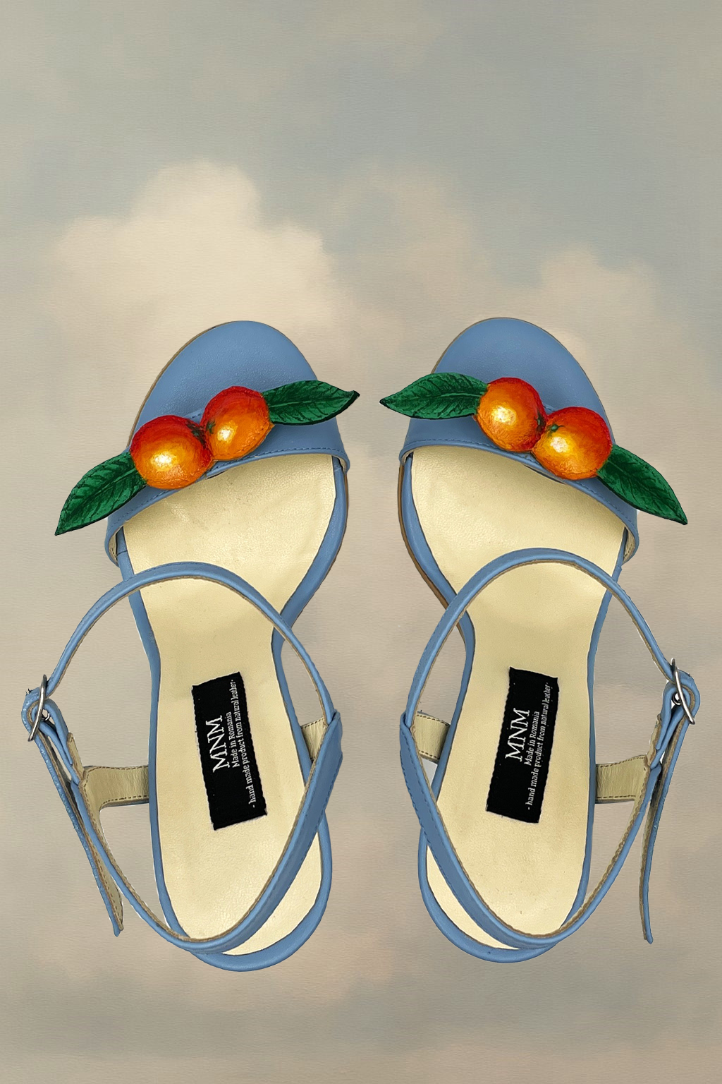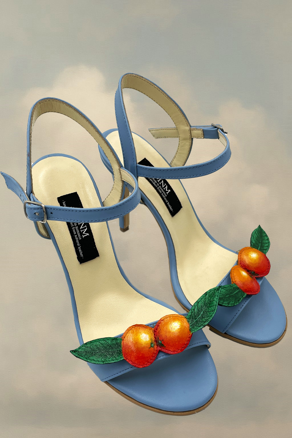 Inspired by the sun-drenched charm of Mediterranean orchards, these 90mm heels are a true celebration of artistry and nature. Hand-painted with two delicate mandarins on each foot, they blend vibrant craftsmanship with refined elegance.
